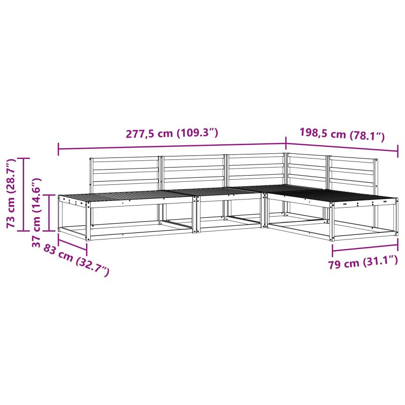 • 1 х Среден диван: 79 x 83 x 73 см (Д x Ш x В)