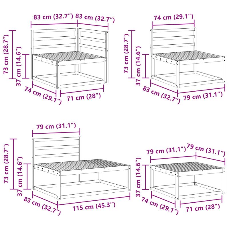 • 3 x средни дивана: 59 x 63 x 73 см (Д x Ш x В)