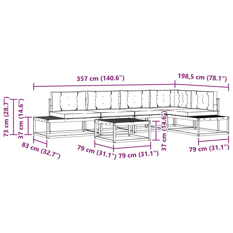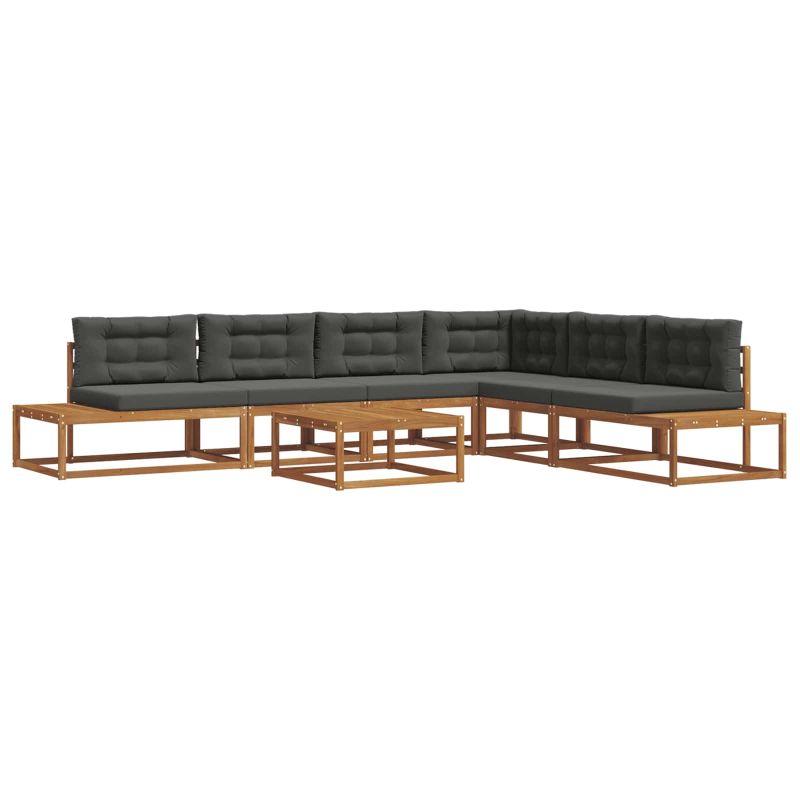 Този секционен диван за навън е перфектен за всяка градина или тераса, съчетавайки модерен дизайн с практичност. Съчетавайки чисти линии и семплота, той е универсален за различни открити пространства. Изработен от здрава акациева дървесина, комплектът излъчва елегантност и здравина, комбинирайки стил с удобство. Перфектен за събирания на открито или за спокойно място за размишление, този диван обещава години на приятно изживяване. Материали: Направен от масивна акациева дървесина, диванът е изключително здрав и устойчив на времето. Акацията допринася за визията на пространството с своите естествени нюанси и текстури, осигурявайки визуални хармония и стабилност. Включени Компоненти: Комплектът включва всичко необходимо – комфортен гръб и широки плоскости за сядане, които осигуряват удобство и добра вентилация. Плоскостите допълват елегантния вид и функционалността на дивана. Характеристики / Функция / Дизайн: Здравата конструкция е създадена за дълга употреба навън и предлага удобни места за сядане. Дизайнът с плоскости подобрява вентилацията и визуалния апел, съчетавайки комфорт и стил. Препоръчителни Използвания: Идеален за градини и тераси, този диван добавя модерен нюанс. Стилът му е подходящ за всякакви събирания – от семейни вечери до спокойни вечери насаме, той съчетава комфорт с дизайн. Поддръжка и Грижа: За да запазите дивана, просто чистете с суха кърпа. Избягвайте абразиви и най-добре е да го покриете при неблагоприятни условия. Лесното почистване помага да запазите неговото качество и дълготрайност, отразявайки ангажимента ви към безпроблемно поддържане.