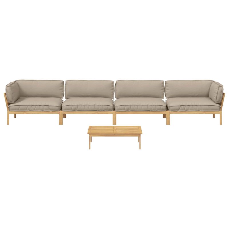 Комплект дивани Едноцветен 5 pcs Таупе Солидно акациево дърво