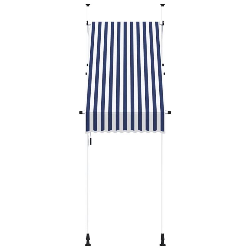 Ръчно прибиращ се сенник, 100 см, синьо-бели ивици