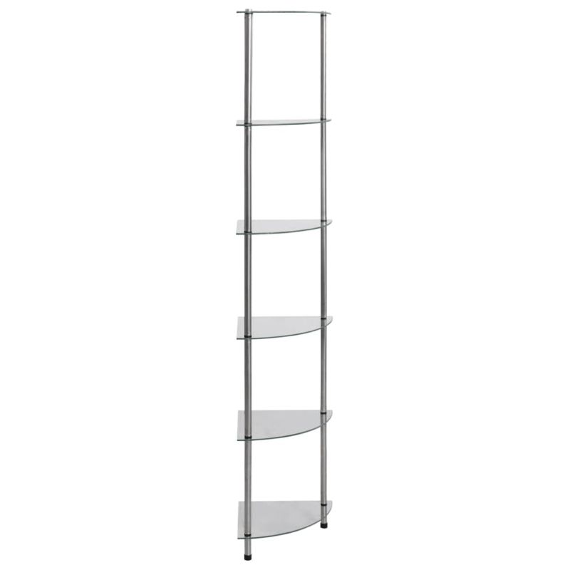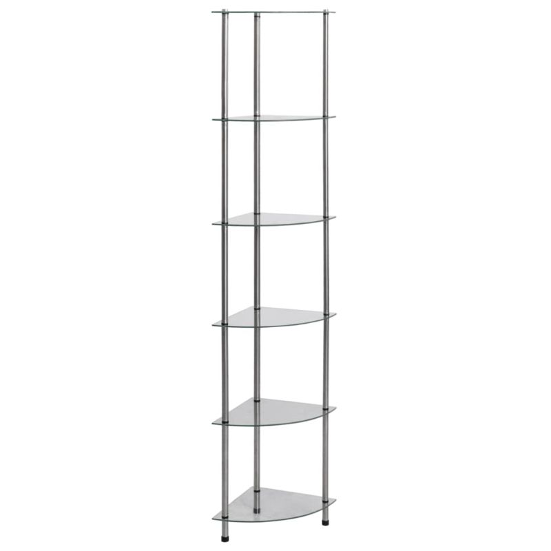 Незабавно добавете усещане за стил към вашето жизнено пространство с този модерен и практичен стъклен рафт! Витрината е проектирана с шест нива за достатъчно място за съхранение. Можете да използвате многофункционалната етажерка във всекидневната или офиса за излагане на колекционерски предмети, фоторамки, саксийни растения или в банята за подреждане на вещи от първа необходимост. Изработен от дебело закалено стъкло и неръждаема стомана, този рафт е изключително здрав и безопасен. Освен това гладката повърхност се почиства лесно само с влажна кърпа.