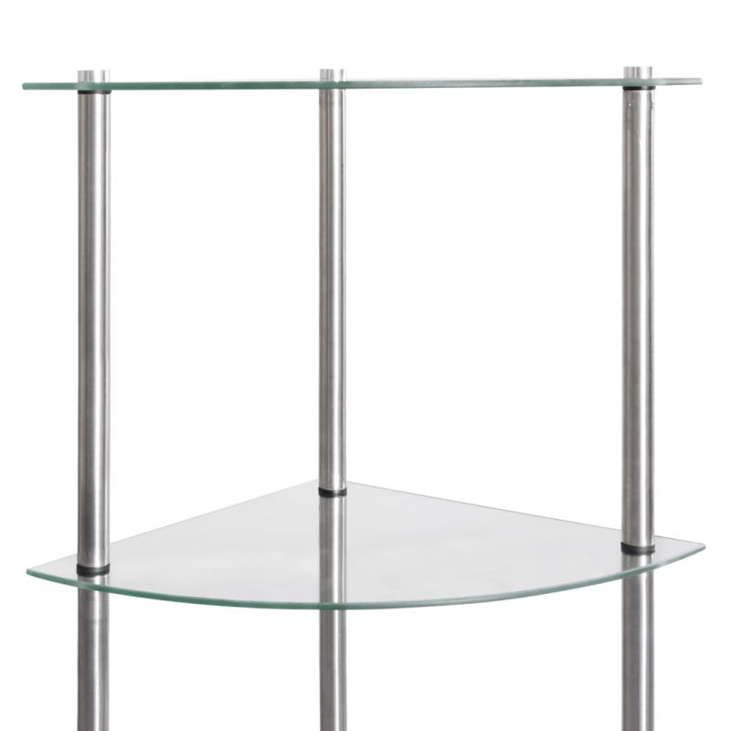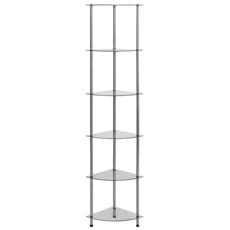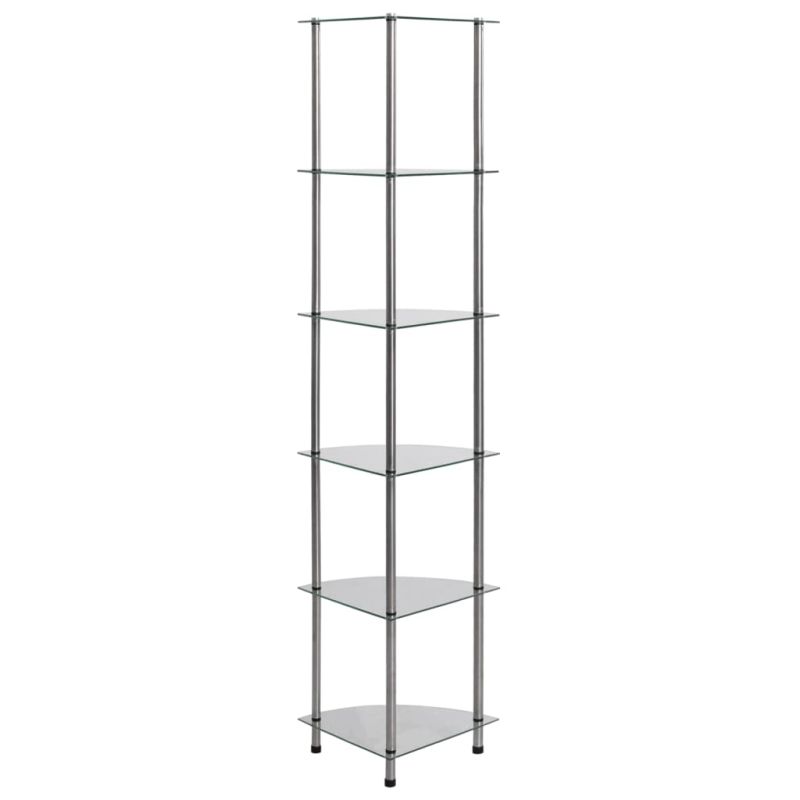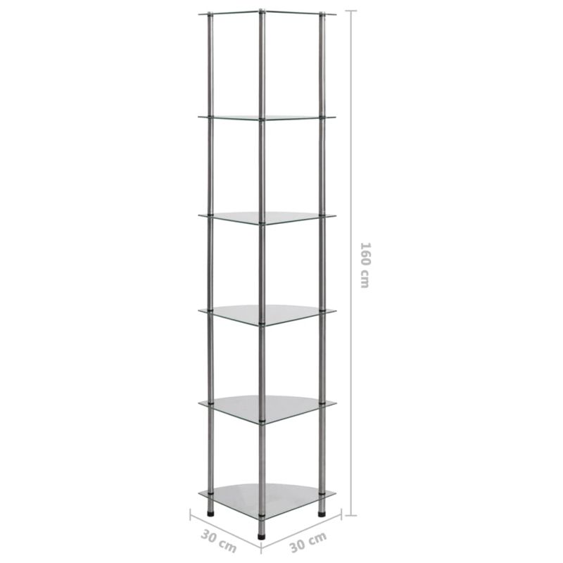 6-етажен рафт, прозрачен, 30x30x160 см, закалено стъкло