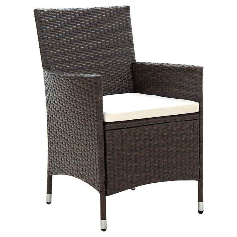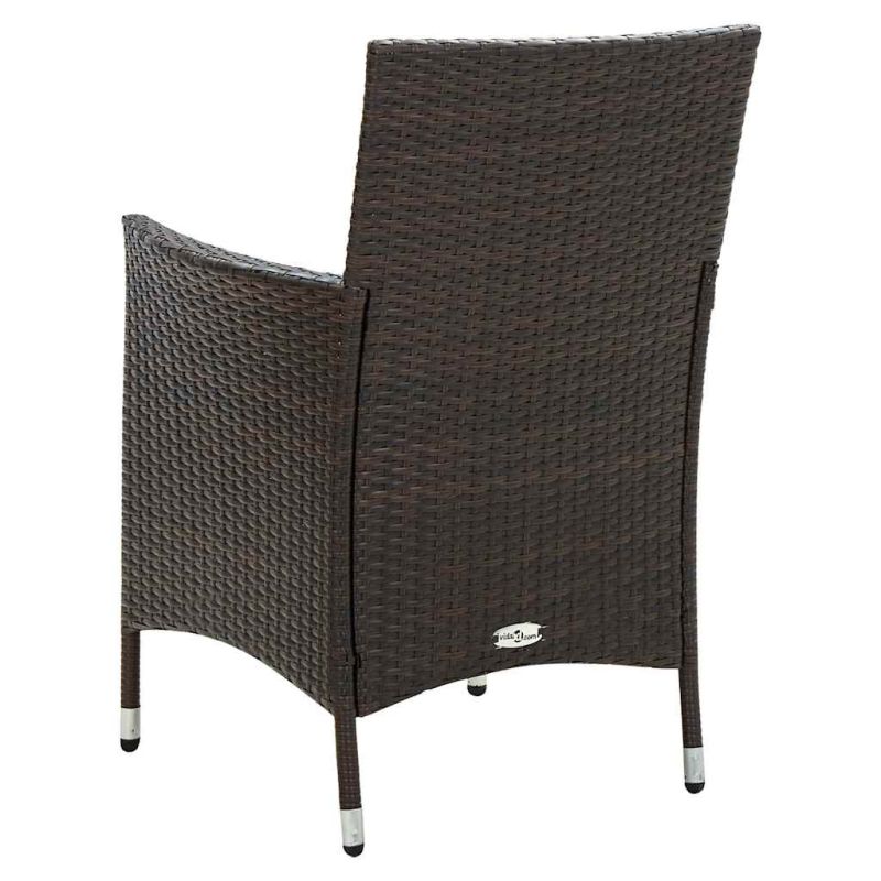 Със стилен дизайн и издръжлива стоманена рамка, този комплект трапезни мебели е перфектен избор за вашето външно жилищно пространство. Този градински трапезен комплект разполага с прахово боядисана стоманена рамка, която прави масата и столовете стабилни и издръжливи. Благодарение на устойчивия на атмосферни влияния и водоустойчив PE ратан, комплектът мебели за открито се почиства лесно. Дебелите, подвижни възглавници на седалката допринасят за комфорта на седене и се перат лесно. Забележка: За да удължите живота на вашите градински мебели, ви препоръчваме да ги защитите с водоустойчиво покривало. Максимално 110 кг на седалка. Съобразете се с риска от открит огън и други източници на силна топлина в близост до продукта.