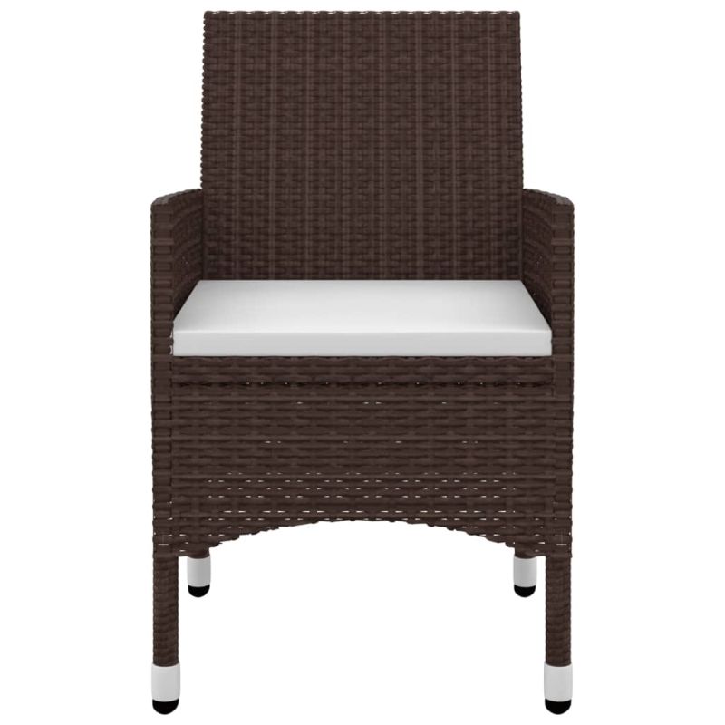 Този стилен градински трапезен комплект ви осигурява спокойно и комфортно време със семейството и приятелите. Прахово боядисаната стоманена рамка прави масата и столовете здрави и издръжливи. Изработени от устойчив на атмосферни влияния и водоустойчив PE ратан, столовете са лесни за почистване, издръжливи и подходящи за ежедневна употреба. Гладкият стъклен плот е идеален за поставяне на напитки, храна или някои декоративни предмети. Освен това, дебело подплатената възглавница на седалката добавя допълнителен комфорт при седене на столовете. Забележка: За да удължите живота на вашите градински мебели, ви препоръчваме да ги защитите с водоустойчиво покритие.