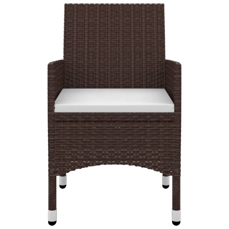 Този стилен градински трапезен комплект ви осигурява спокойно и комфортно прекарване със семейството и приятелите ви. Прахово боядисаната стоманена рамка прави масата и столовете здрави и издръжливи. Изработени от устойчив на атмосферни влияния и влага PE ратан, столовете са лесни за почистване, издръжливи и подходящи за ежедневна употреба. Гладкият стъклен плот е идеален за поставяне на напитки, храна или някои декоративни предмети. Освен това дебело подплатената възглавница на седалката доставя допълнителен комфорт при седене на столовете. Забележка: За да удължите живота на вашите градински мебели, препоръчваме ви да ги почиствате редовно и да не ги оставяте ненужно на открито без защита.Почистване: Използвайте мек сапунен разтвор.Съхранение: Ако е възможно, съхранявайте на хладно и сухо място на закрито. Ако продуктът се съхранява на открито, защитете го с водоустойчиво покривало. Избършете и изсушете излишната вода или сняг от плоските повърхности след дъжд или снеговалеж. Осигурете достатъчно циркулация на въздух, за да избегнете повреди, свързани с влагата. Максимално 110 кг на седалка. Съобразете се с риска от открит огън и други източници на силна топлина в близост до продукта.