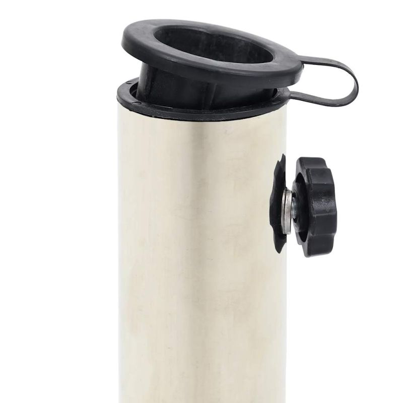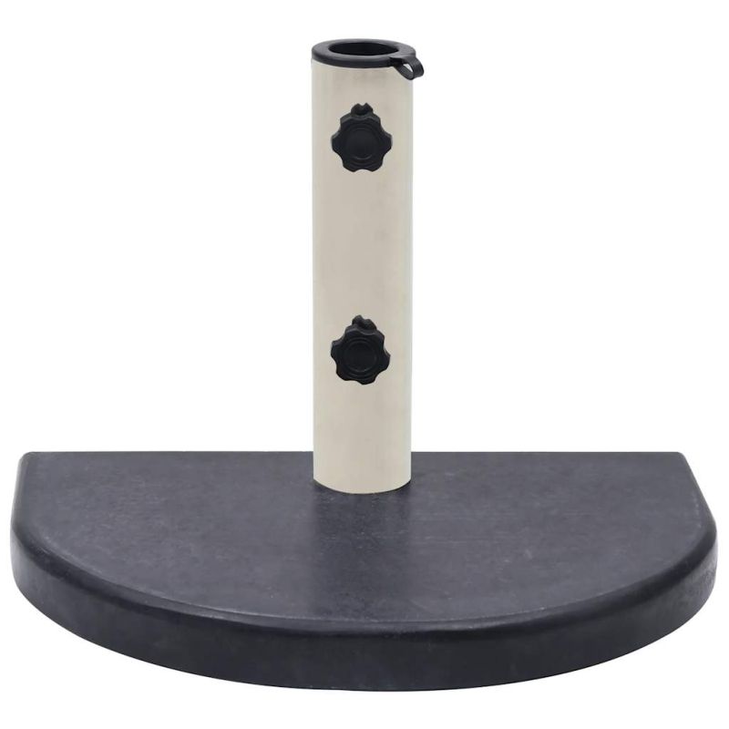 Тази полукръгла основа за чадър осигурява здрава и стабилна основа за задържане на чадъра ви, както и за предпазването му от преобръщане или издухване. Държачът за чадър е с издръжлива гранитна конструкция, която е много стабилна, благодарение на голямото си тегло. Гранитът също така има висококачествен вид и усещане, което придава на основата за чадър изтънчен външен вид, който ще добави докосване на елегантност към вашето външно жилищно пространство и ще допълни вашите луксозни градински мебели. Тръбата е изработена от неръждаема стомана. Включените адаптери са подходящи за чадъри с диаметър от 38 мм или 48 мм. Много е лесно да монтирате чадъра си към основата и да го държите здраво укрепен.