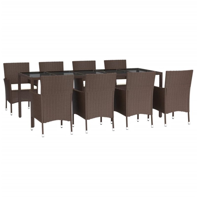 Градински трапезен комплект възглавници 9 части кафяв полиратан