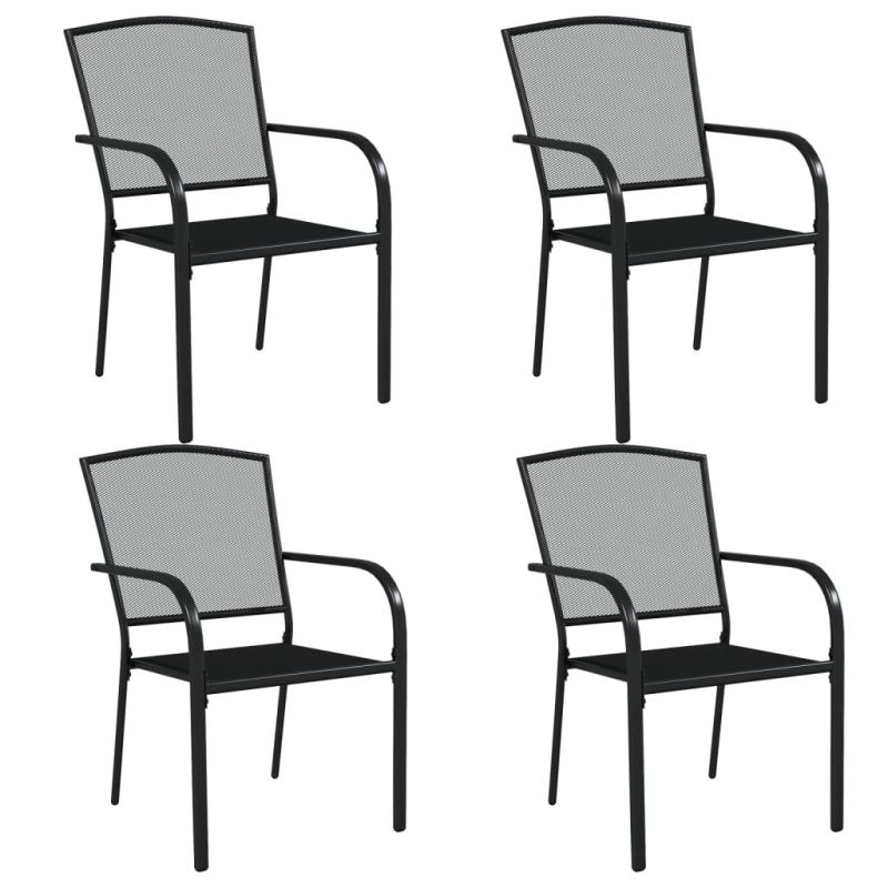 Този модерен градински трапезен комплект, отличаващ се с елегантен и съвременен дизайн, е перфектен избор за почивка във вашата градина. Здрав материал: Стоманата е изключително твърд и здрав материал. Затова предлага здравина и стабилност. Праховото боядисване и електрофорезно покритие върху стоманата създават защитен слой срещу износване.Стабилна рамка: Прахово боядисаната стоманена рамка с електрофорезно покритие осигурява здравина и стабилност на трапезния комплект.Функция стифиране: Трапезните столове могат да се подреждат едно върху друго, за да се спести място, когато не се използват.Практична маса: Здравият плот на трапезната маса е идеален за поставяне на ястия, напитки и други декоративни елементи.Елегантни крака: Извитите крака на градинската трапезна маса създават атмосфера на елегантност, като същевременно осигуряват стабилност.Мрежест дизайн: Трапезният комплект за открито с мрежест дизайн изглежда семпъл и непреходен и е подходящ за балкони, веранди, градини, вътрешни дворове и др. Забележка:За да сте сигурни, че вашите външни мебели ще останат красиви, ви препоръчваме да ги защитите с водоустойчиво покривало. Максимално 110 кг на седалка.