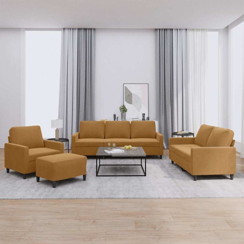 Комплект дивани от 4 части с възглавници, кафяв, кадифе