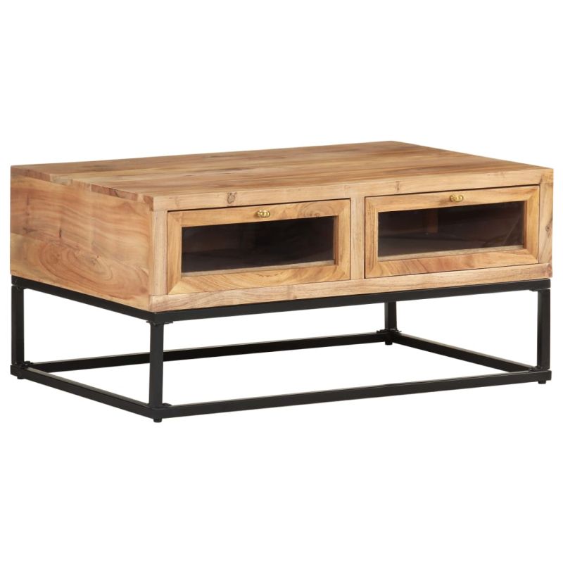 Внесете усещане за индустриален чар в домашния си декор с тази стилна дървена кафе маса! Тази холна маса е изработена от масивно акациево дърво, което я прави здрава и стабилна. Майсторската изработка и красивите дървесни шарки правят всяка мебел уникална и леко по-различна от следващата. Холната маса е снабдена с 2 чекмеджета, така че можете да излагате или съхранявате добре организирани предмети, които искате. Нещо повече, стоманената основа допринася за неговата здравина. Важна забележка: Дървесните зърна и цветовете се различават при различните елементи, което прави всеки витринен шкаф уникален.