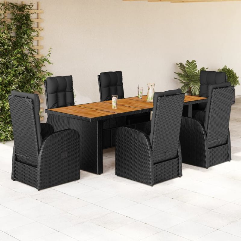 Градински трапезен комплект 7 части възглавници черен полиратан