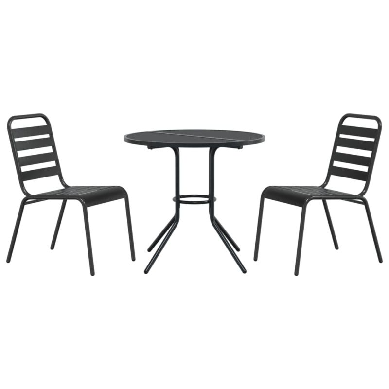 Градински столове, 3 части, антрацит, прахово боядисана стомана
