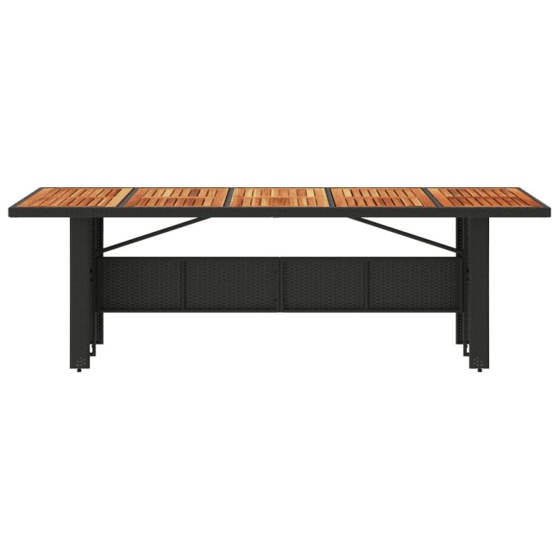Градинска маса с плот от акация, черно, 240x90x75 см, полиратан