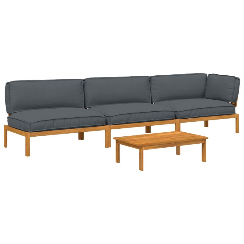 Комплект дивани 4 pcs Антрацит Солидно акациево дърво