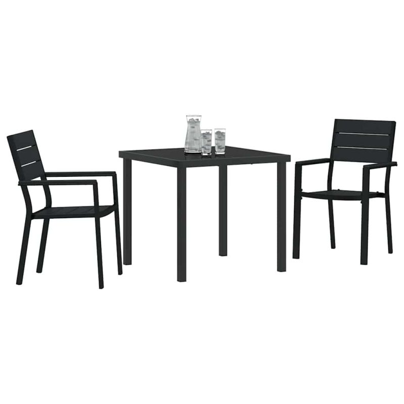 Този комплект за хранене на открито предлага съвременен микс от стил и практичност, идеален за хранене под открито небе в градини и на тераси. Неговият елегантен, минималистичен дизайн излъчва изтънченост, а здравата конструкция гарантира устойчивост на времето сезони наред. Материал от прахово боядисана стомана: Комплектът за хранене е изработен от прахово боядисана стомана, известна със своята издръжливост и здравина. Праховото покритие предоставя красив завършек, който предпазва метала от влага и UV лъчи. С този здрав материал, комплектът може да понесе ежедневно ползване и излагане на елементите, без да губи своята привлекателност. Функционални компоненти: Всеки елемент в комплекта, от подлакътниците до рамката и краката, е внимателно проектиран. Удобните подлакътници предлагат опора за ръцете, здравата рамка осигурява стабилност, а краката предоставят необходима подкрепа. Тези елементи съчетават естетика и практичност, подобрявайки преживяването при хранене на открито. Модерни дизайнерски характеристики: Модерният стил на комплекта комбинира чисти линии с практична функционалност, правейки го идеален за всяко съвременно открито пространство. Черният цвят лесно се съчетава с разнообразни декорации в градината, добавяйки елемент на елегантност и изтънченост. Гъвкаво използване: Идеален за пролетни и летни събирания, този комплект е подходящ както за семейни вечери, така и за интимни събития. Дизайнът му го прави гъвкав вариант за градини и тераси, лесно адаптивен за различни ситуации и поводи. Поддръжка и грижа: За дълготрайност използвайте покривало, когато не се ползва. Минимална поддръжка е необходима; бързосъхнещите материали гарантират, че комплектът е готов за употреба веднага след дъжд или почистване. Максимално 110 кг на седалка.