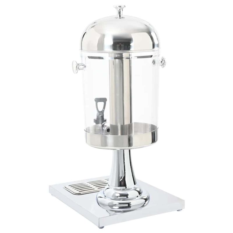 Този диспенсър за сокове е изискано решение за сервиране на охладен сок или други напитки към шведски маси, барбекюта и други събития. Контейнерът за сок е с капацитет 8 литра. Диспенсърът за напитки с кранче е подходящ за чаши с максимална височина 15,5 см. Централният цилиндър може да се напълни с кубчета лед за охлаждане на напитките. Тавата за събиране на капките събира разлетия сок и може лесно да бъде извадена и изпразнена. Диспенсърът за напитки има рамка от неръждаема стомана и прозрачен пластмасов контейнер, което го прави издържлив и лесен за почистване.