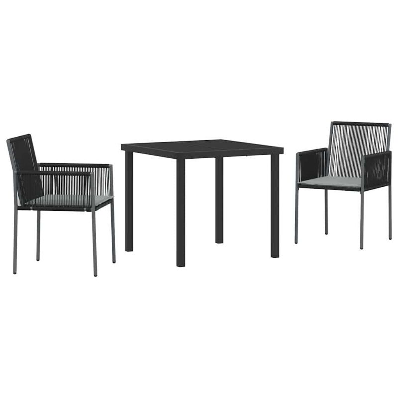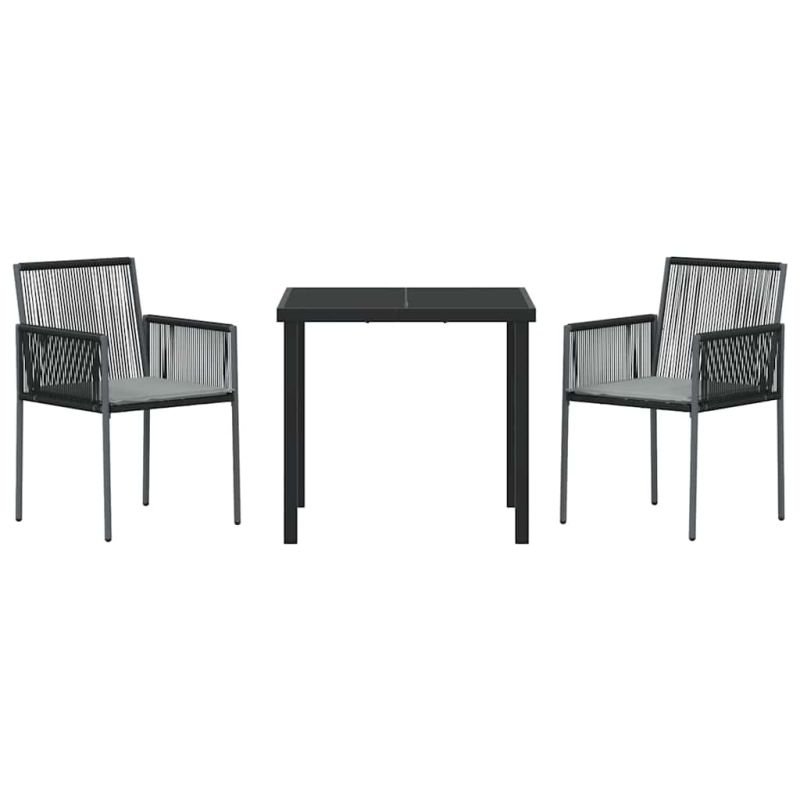 Комплект за хранене в градината 3 pcs Черно ПЕ ратан