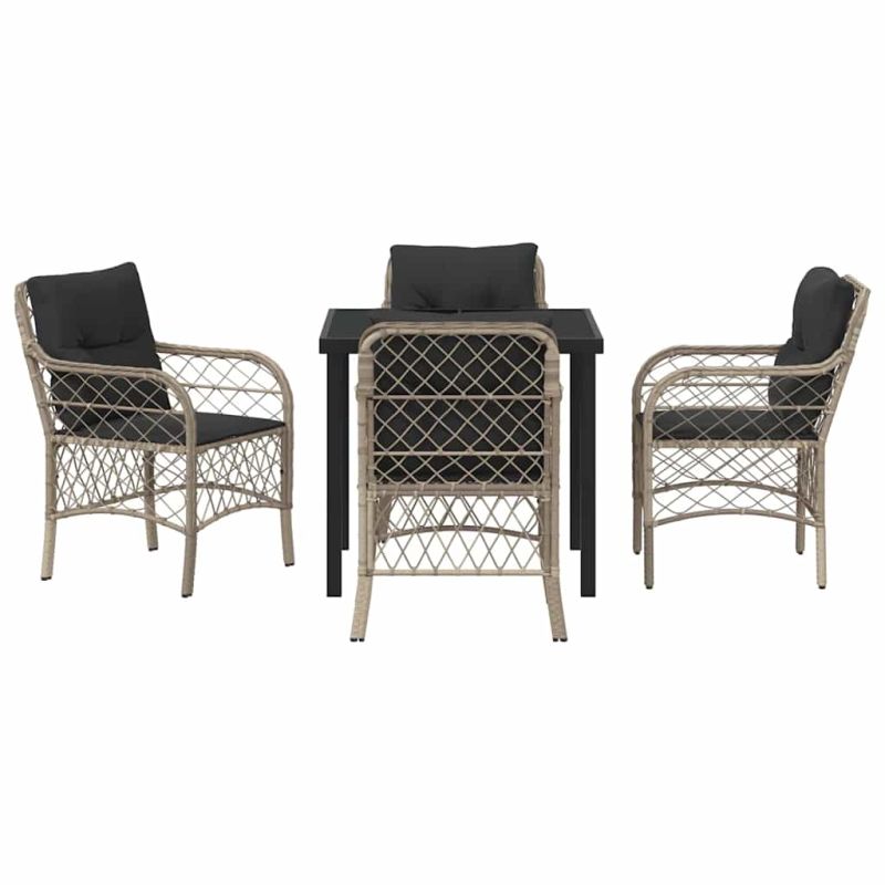 Комплект за хранене в градината 5 pcs Светлосиво полиратан