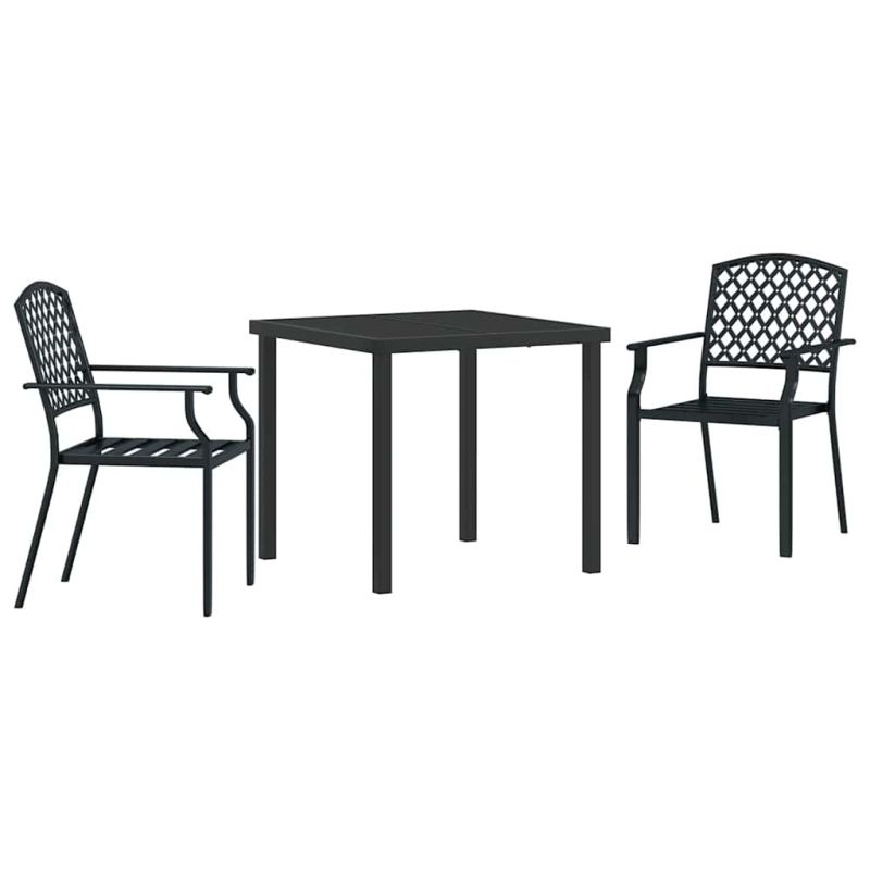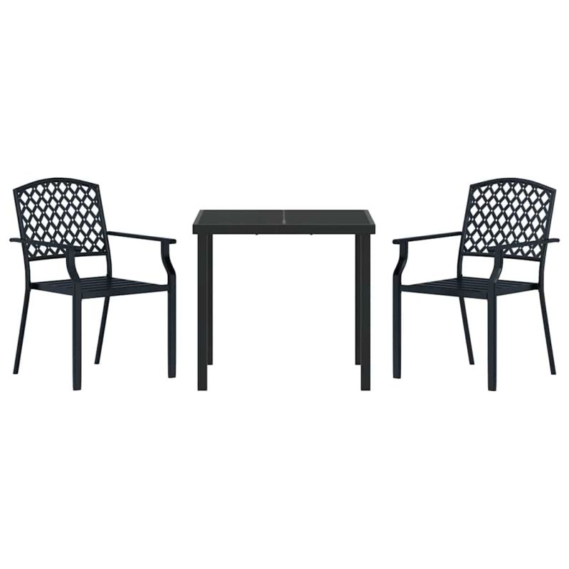 Този стилен комплект за хранене е перфектен за всяка открита обстановка. Проектиран с модерен минимализъм, предлага чисти линии и елегантен вид, който лесно се вписва в средата. Идеален е за малки събирания или за тихи вечери навън. Конструкция от прахово боядисана стомана: осигурява здравина и издръжливост на комплекта, който е подходящ за всякакво време. Допълнителното защитно покритие предпазва от корозия. Плот от закалено стъкло: здрав и устойчив, плотът добавя модерен блясък и минимизира риска от надраскване и счупване. Завършен гръб и подлакътници: с изчистен дизайн, тези елементи увеличават комфорта и правят всяка среща приятно изживяване. Идеален за пролетта и лятото: подходящ за открито, материалите бързо съхнат, така че внезапните дъждове няма да съборят плана ви. Лесна поддръжка: просто покривайте комплекта, когато не се използва. Така запазвате външния вид на комплекта за години напред. Максимално 110 кг на седалка.