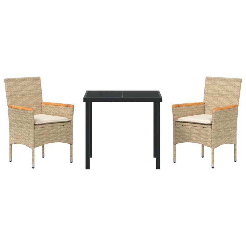 Този модерен комплект за хранене в градината е уникален избор за вашето открито пространство, съчетаващ стил и функционалност. С чисти линии и минималистичен дизайн, той придава съвременен вид, който се вписва перфектно в всяка градина или тераса. Комплектът включва маса с закалено стъкло и удобни места от полиратан с възглавници. Идеален е за летни събирания или спокойни следобеди, като преобразява изживяванията на открито, свързани с храненето. Премиум материали Комплектът е направен от полиратан, известен с UV устойчивостта си и защитните си качества, осигуряващи дълготрайност, дори при тежки летни условия. Прахово боядисаната стоманена рамка добавя стабилност и предотвратява ръждясването. Пълни компоненти Включени са облегалки от полиратан за удобна опора и плоски подлакътници от акация, които придават елегантен вид, а стъклената маса улеснява почистването. Вълнените възглавници осигуряват комфорт и са устойчиви на атмосферни условия. Функционални характеристики Удобен дизайн с подвижни калъфки за възглавници, които могат да се перат, позволяващи лесна поддръжка и адаптивност. Лесната конструкция улеснява пренареждането за различни събития, без ненужно компромисиране на устойчивостта. Универсално използване Идеален за градината и терасата, комплектът поддържа различни открити дейности – от семейни вечери до весели събирания, предлагайки комфортна и стилна атмосфера с модерен вид. Инструкции за поддръжка Препоръчва се да се използва покривало, когато не се използва, за да се осигури дълготрайност. Почистването с кърпа помага да се запази блясъкът на компонентите с времето. Максимално 110 кг на седалка. Съобразете се с риска от открит огън и други източници на силна топлина в близост до продукта.