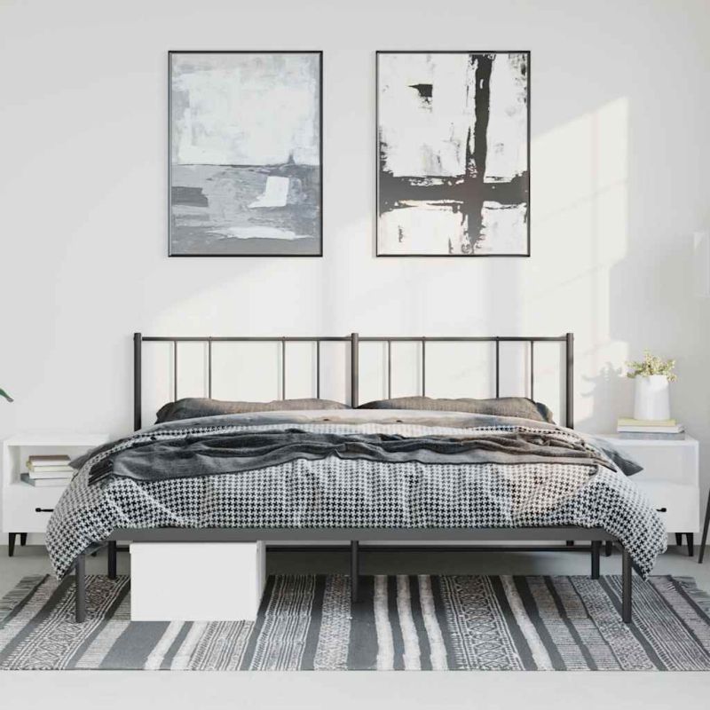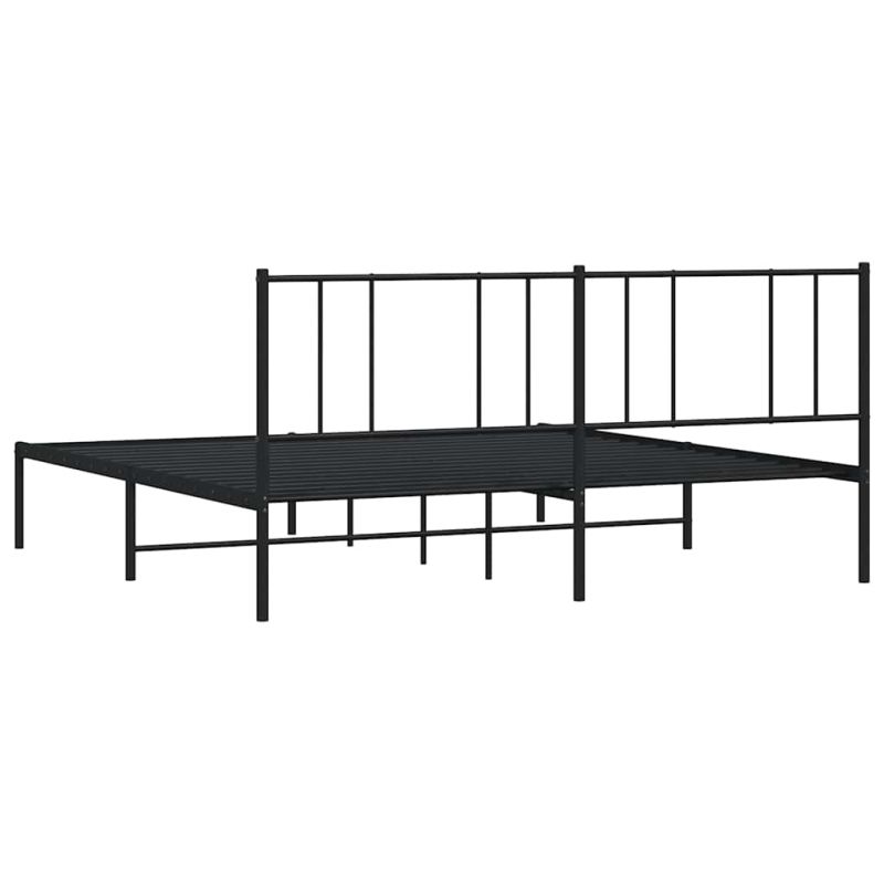 Метална рамка за легло с горна табла, черна, 183x213 см