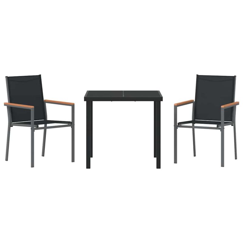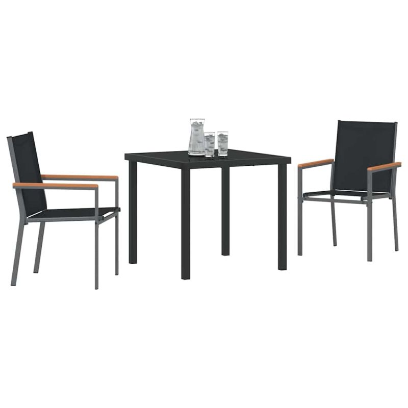 Този модерен комплект за хранене на градина е идеален за всеки, който цени стил и функционалност на открито. Състоящ се от изчистени линии и минималистичен дизайн, той ще преобрази градината и терасата в шикозни места, готови за събирания през пролетта и лятото. Материали: Изработен от здрава текстилна материя с бързосъхнещи свойства, комплектът включва прахово боядисана стомана, която е устойчива на времето и ще запази красотата си, идеален за градини с променливи сезони. Включени компоненти: Комплектът се състои от стилна маса и удобни столове с мрежести облегалки и стоманени подлакътници. Прахово боядисаното покритие показва, че всеки компонент е устойчив на избледняване, увеличавайки функционалността му. Характеристики: UV-устойчивите материали гарантират защита от дълго стоящо слънце. Тази характеристика комбинирана с прахово боядисаната стомана прави комплекта идеален за слънчеви зони, осигурявайки дълготрайност без компромиси с комфорт или стил. Препоръчителни приложения: Подходящ за всякакви външни сценарии, комплектът лесно се вписва в градински и терасови пространства, предлагаща визуално удоволствие и практичност за срещи и вечери. Поддръжка и грижа: За да удължите живота на продукта, използвайте защитно покритие, когато не го ползвате. Тази проста стъпка за защита предпазва комплекта от износване, оставяйки го важна част от вашата външна среда. Максимално 110 кг на седалка.