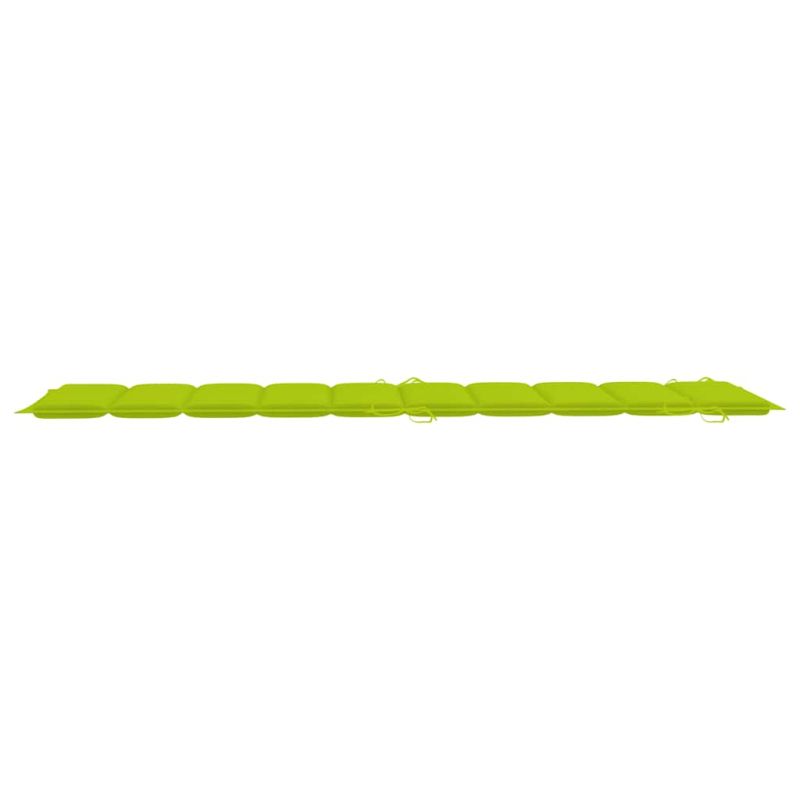 Този дървен люлеещ се шезлонг е подходящ за слънчеви бани и почивка край басейна, на балкона, във вашия двор или градина по време на отпуска или в свободното време. Тази мебел от тик е изработена от изключително издръжлива тикова твърда дървесина, която е суха – изсушена в пещ, а след това фино шлифована, за да ѝ се придаде много гладък вид. Тиковото дърво е известно с изключителната си здравина и устойчивост на атмосферни влияния, което го прави далеч по-подходящо за градински мебели от всеки друг вид дърво. Тиковата дървесина е идеалният избор, ако искате да закупите дълготрайна градинска мебел. Това шезлонг е проектиран да се люлее за допълнителна релаксация. Включената възглавница е нещо повече от практично допълнение; тя има и декоративна функция. Забележка: За да удължите живота на вашите градински мебели, препоръчваме ви да ги почиствате редовно и да не ги оставяте ненужно на открито без защита.Почистване: Използвайте мек сапунен разтвор.Съхраняване: Ако е възможно, съхранявайте на хладно и сухо място на закрито. Ако продуктът се съхранява на открито, защитете го с водоустойчиво покривало. Избършете и изсушете излишната вода или сняг от плоските повърхности след дъжд или снеговалеж. Позволете достатъчно циркулация на въздуха, за да избегнете повреди, свързани с влагата.