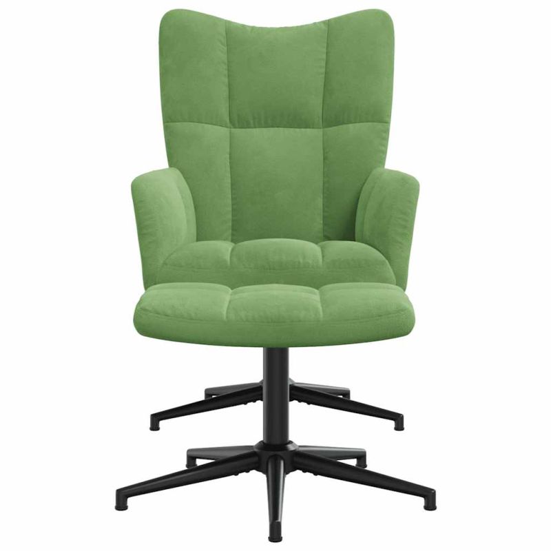 Релаксиращ стол с табуретка, светлозелен, кадифе