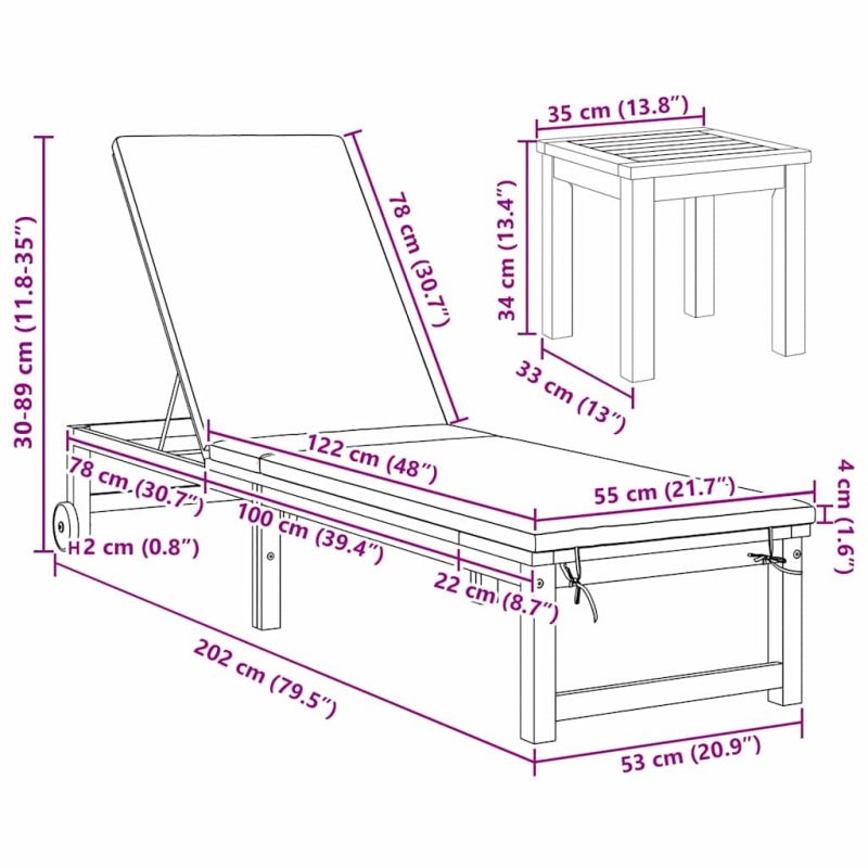 Този модерен шезлонг е създаден за отпускане навън и чудесно пасва на градините и терасите. Със стилен дизайн, той добавя простота и функционалност в откритите пространства. Правоъгълната му форма и минималистичен стил го правят привлекателен избор за любителите на слънцето, които търсят комфорт и елегантност. Релаксацията е на фокус, а акациевата му структура ти осигурява трайност и стил. Здраво акациево дърво: Известно със своята устойчивост, масивното акациево дърво е основата на този шезлонг. То предлага стабилност и дълготрайност. Природният вид на дървото внася елегантност в градините и терасите. Устойчив на времето: Проектиран да устои на условията навън, този шезлонг запазва вида си в дъжд или слънце. Идеален за слънчевите сезони, той облекчава грижите по поддръжка. Регулируема облегалка: Лесно можеш да настроиш облегалката, за да намериш удобния ъгъл. Идеален за слънчеви бани или четене, гъвкавостта на позиционирането подобрява преживяването. Минималистичен стил: С чисти линии, този шезлонг носи модерен усет навън. Дизайнът му е идеален за съвременния декор на открито, което го прави универсално решение. Лесна поддръжка: Поддържането е безпроблемно - просто избърсвай с влажна кърпа и го съхранявай покрит по време на лошо време, за да запазиш добрия му вид. Дизайнът осигурява дълготрайност и години на удоволствие.