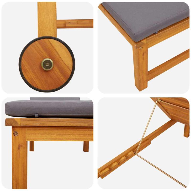 Този модерен шезлонг е създаден за отпускане навън и чудесно пасва на градините и терасите. Със стилен дизайн, той добавя простота и функционалност в откритите пространства. Правоъгълната му форма и минималистичен стил го правят привлекателен избор за любителите на слънцето, които търсят комфорт и елегантност. Релаксацията е на фокус, а акациевата му структура ти осигурява трайност и стил. Здраво акациево дърво: Известно със своята устойчивост, масивното акациево дърво е основата на този шезлонг. То предлага стабилност и дълготрайност. Природният вид на дървото внася елегантност в градините и терасите. Устойчив на времето: Проектиран да устои на условията навън, този шезлонг запазва вида си в дъжд или слънце. Идеален за слънчевите сезони, той облекчава грижите по поддръжка. Регулируема облегалка: Лесно можеш да настроиш облегалката, за да намериш удобния ъгъл. Идеален за слънчеви бани или четене, гъвкавостта на позиционирането подобрява преживяването. Минималистичен стил: С чисти линии, този шезлонг носи модерен усет навън. Дизайнът му е идеален за съвременния декор на открито, което го прави универсално решение. Лесна поддръжка: Поддържането е безпроблемно - просто избърсвай с влажна кърпа и го съхранявай покрит по време на лошо време, за да запазиш добрия му вид. Дизайнът осигурява дълготрайност и години на удоволствие.