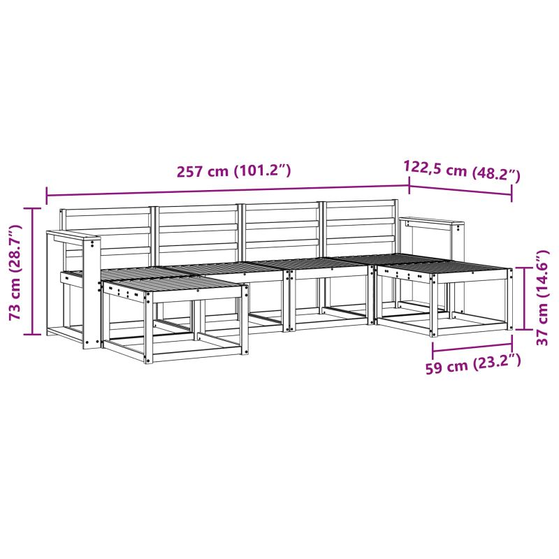 Комплект дивани за открито 6 pcs Естествен Инженерно дърво