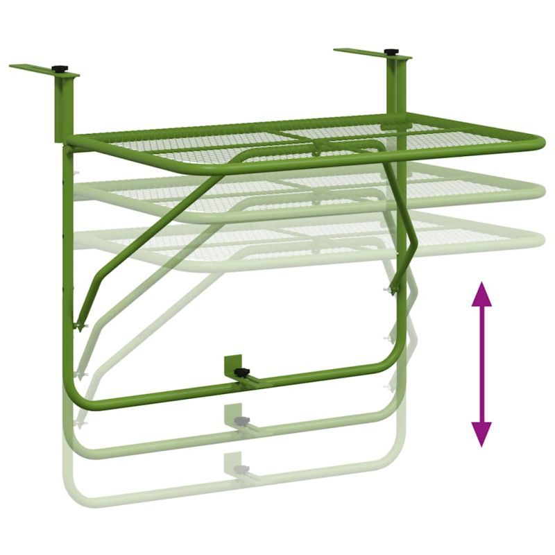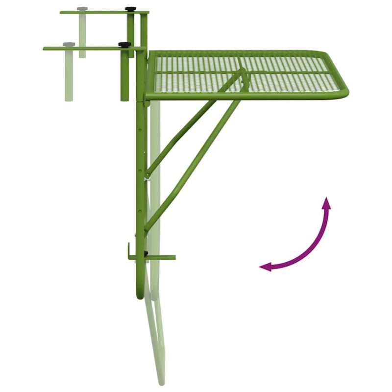 Тази балконска маса е предназначена да бъде чудесно допълнение към вашия балкон. Тя се сгъва лесно, за да пести място, когато не се използва. Многофункционален дизайн: Тази балконска масичка е идеална за вашата веранда, парапет, балкон, независимо дали я използвате като масичка за кафе, за да поставите напитките си, или удобна повърхност за съхранение на предмети като градински инструменти и саксийни растения.Първокласен материал: Страничната маса е изработена от стомана, която е издръжлива, лесна за поддръжка и устойчива на атмосферни влияния. Нейният мрежест дизайн и електрофорезно боядисване добавят нотка на индустриален чар на вашия балкон.Спестяване на място: Масата заема много малко подово пространство, докато се използва и се сгъва с минимално усилие, когато вече не е необходима, което позволява лесно съхранение. Забележка:Забележка: За да удължите живота на вашите градински мебели, ви препоръчваме да ги защитите с водоустойчиво покритие.