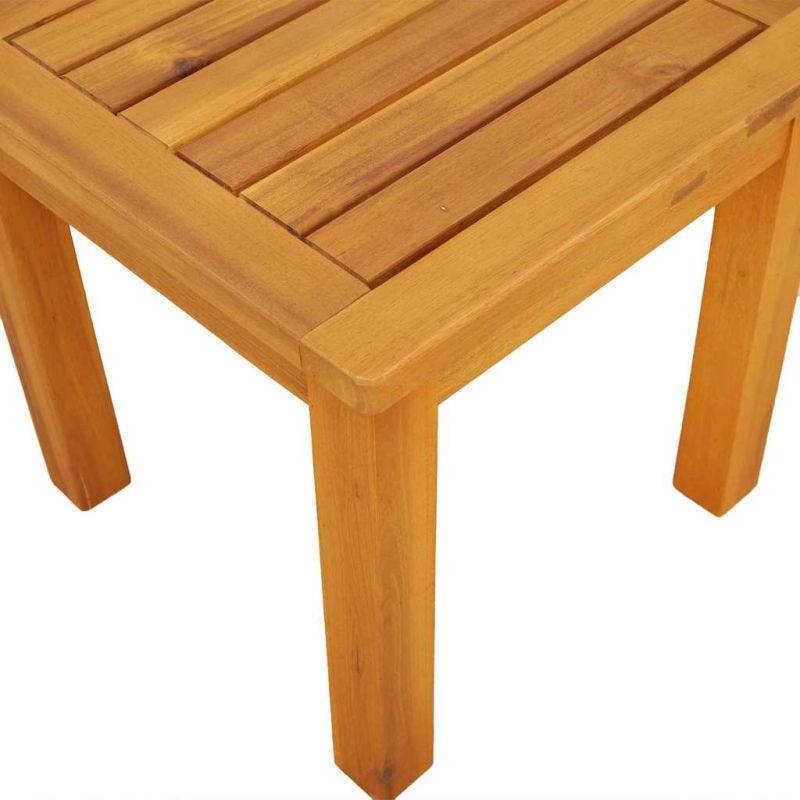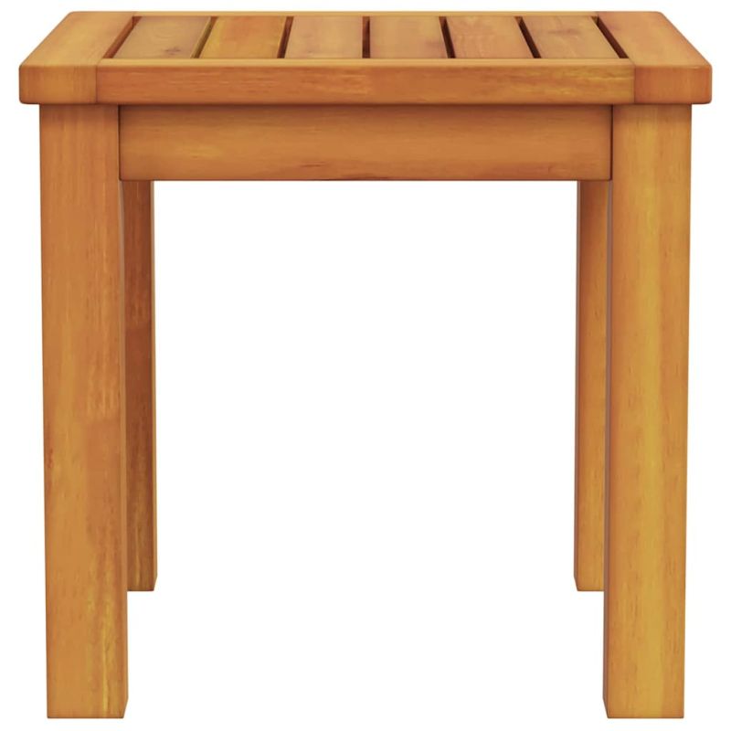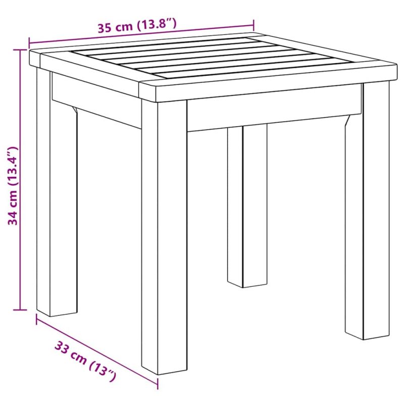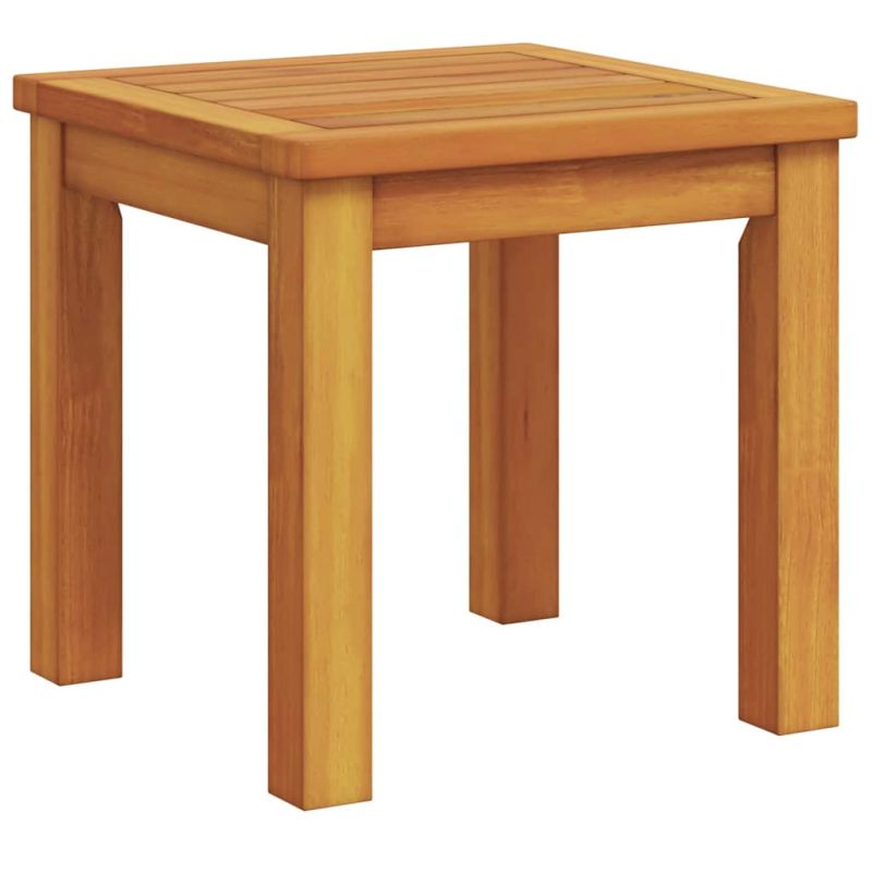 Тази симпатична градинска маса е страхотно допълнение за всяко закрито или открито място, съчетаваща модерен минимализъм и удобство. Компактната квадратна форма ѝ позволява да се вписва в градини, тераси или дори холове, предоставяйки идеалното място за вашето кафе сутрин или коктейл вечер. Изработена е от масивна акациева дървесина, която ѝ придава естествен и топъл вид, подхождаща на всякакъв стил на интериора и трайна, както за на горе, така и за на закрито. Уникален материал Изработена от масивна акациева дървесина, тази маса блести с богатия си кафяв цвят, показвайки стабилност и стил. Акакцията е много здрава, което гарантира доходност на масата по време на всякакви метеорологични условия. Естественият шарен модел добавя уникалност на всяка маса, така че почти никога няма да намерите две идентични. Модерен и практичен дизайн Тази маса притежава семпъл модерен вид, съчетаваща простота с функционалност. Чистите линии и минимализмът я правят много подходяща за всякакъв интериор. Тя добавя модерен привкус на градините или терасите, без да натрапва видима доминация. Стабилни крака Краката, направени от масивна акациева дървесина, предлагат надеждна опора. Простата цилиндрична форма осигурява стабилност, идеална за селски или естествени обстановки. Те я правят надеждна, независимо от повърхността, на която стои, било то трева или плочки. Компактна и многофункционална С размери 35 x 35 x 34 см, масата е направена да се вписва навсякъде, служейки като маса за кафе, за поставяне на напитки или за саксии с цветя. Компактната ѝ форма позволява да заема малко място, но предлага голямо пространство за ползване. Лесен монтаж и поддръжка Сглобяването на масата е лесно и изисква само отвертка, а с помощта на приятел можете да се справите бързо. За да я запазите в отлично състояние, сложете защитен слой, когато не я ползвате, за да не се повреди от лошото време и да изглежда добре дълго време.