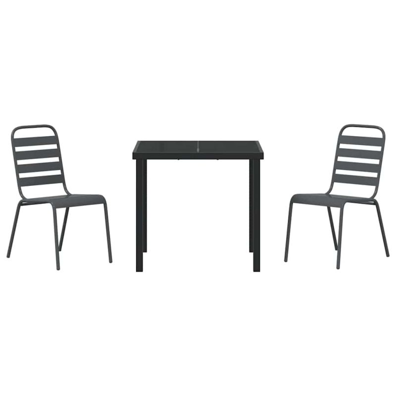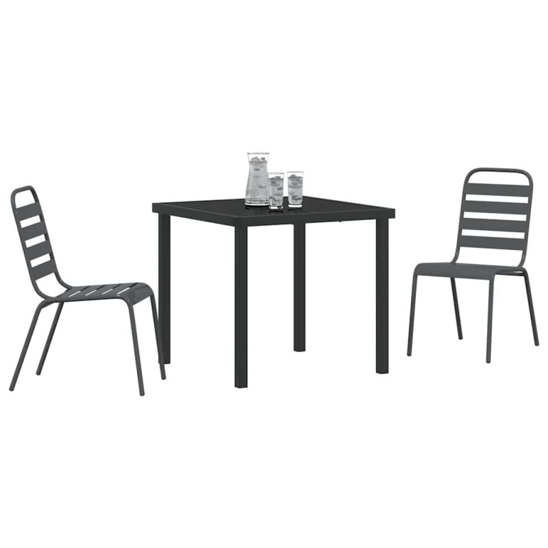 Този комплект за хранене в промишлен стил добавя уникален вид на всяка градина или тераса с формата си и здравото си строителство. Проектиран е за външна употреба, има минималистичен, но функционален дизайн, който е в тон с модерната естетика. С привлекателен антрацитен нюанс и изискан вид, комплектът се превръща в идеалната акцентна част за събирания или уютни вечери, като подобрява опита ви на открито с елегантност и практичност. Материали Комплектът с антрацитен цвят е направен от прахово боядисана стомана, което осигурява здравина и отлично представяне навън. Масата от закалено стъкло добавя лукс и предлага надеждна повърхност, устойчива на различни климатични условия, което го прави перфектен както за стил, така и за функционалност. Включени компоненти Спокойната комбинация от елементи от прахово боядисана стомана придава цялостен вид. Включва стилни крака и рамка, които придават индустриален стил и допълват съвременния външен интериор. Тази конструкция осигурява стабилност и комфорт при хранене. Характеристики Проектиран за външен вид, комплектът е устойчив на сезонни износвания. Праховото покритие добавя защитен слой, който повишава издръжливостта и естетическата привлекателност, идеален за релаксиращи вечери в градината с близки и приятели. Препоръчителни употреби Проектиран е за градини и тераси, идеален за пролетта и лятото. Неговият многопрофилен дизайн съчетава формални хранителни изживявания или уютни събирания, без проблеми се влива в различни среда, осигурявайки функционалност и стил. Грижи и поддръжка За максимална издръжливост, покривайте комплекта, когато не го ползвате. Въпреки здравата си конструкция, редовното покритие в неактивните сезони увеличава дълготрайността му и му помага да бъде мултифункционална част от вашето открито пространство. Максимално 110 кг на седалка.