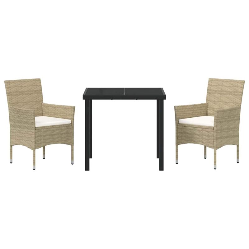 Този стилен комплект за хранене в градината излъчва елегантност и е идеален за събирания на открито в градината или на терасата. Съчетава простота и практичност, с чисти линии и минимален декор. Перфектен е за хранене на открито или за релаксация, а дизайнът му допълва всичко, създавайки приятно място за вашите близки да се насладят на времето навън. Прахово боядисана стоманена рамка: Дизайнът е устойчив на различни метеорологични условия, осигурявайки дълготрайна употреба. Праховото покритие не само увеличава издръжливостта, но и подобрява визията, правейки го идеален за открито през цялата година. Полиратанови облегалка и подлакътници: Комфорт и стил, задължително с ергономична форма. Полиратанът е UV-устойчив, което запазва свежия му вид дори на слънце. Закалена стъклена маса: Има елегантен закален стъклен плот, който е лесен за почистване и устойчив на износване. Перфектно допълва модерен външен вид. Възглавници, устойчиви на времето: Проектирани да понасят различни атмосферни условия, осигурявайки комфорт с невероятно удобен текстил. Пяна за пълнене за приятно усещане. Готов за лятото: Създаден за летни забавления, комплектът е идеален за тераса, палуба или градина. Лесен за сглобяване, с нужда от двама души и отвертка, за да преобразите външното си пространство без усилие. Максимално 110 кг на седалка. Съобразете се с риска от открит огън и други източници на силна топлина в близост до продукта.