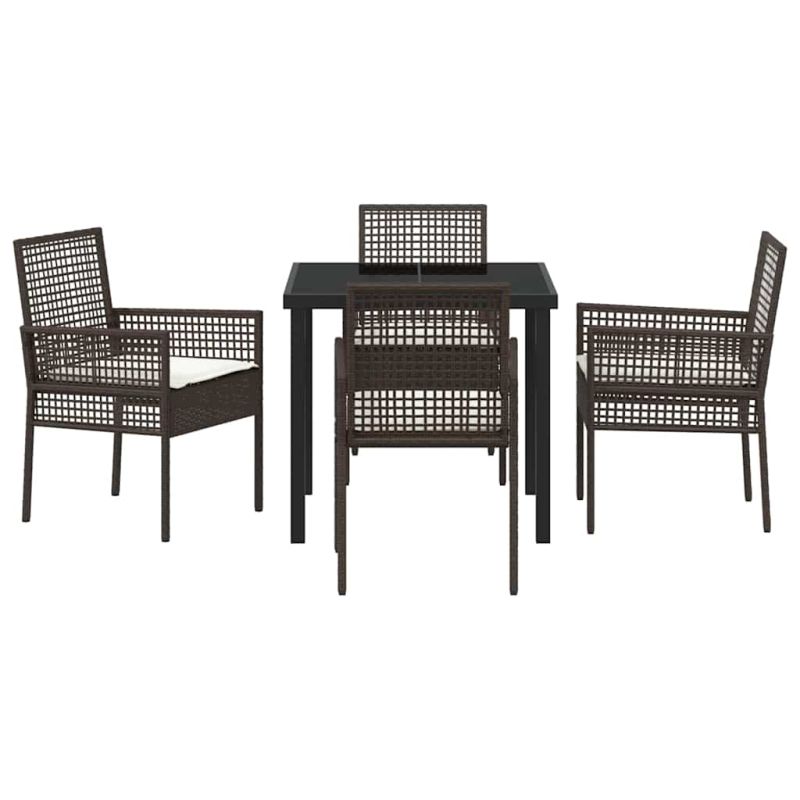 Този комплект за хранене на открито е перфектен за лятото и ще внесе стил в двора ви! Стилният му дизайн лесно се вписва във всяка градина или тераса. С минималистичен вид, той е чудесен за запомнящи се вечери с приятели и семейство. Комплектът е супер комфортен и практичен, така че можете да му се насладите по всяко време. Качествен полиратан: Произведен от премиум полиратан, този комплект е устойчив на UV лъчи и може да издържи дълго време дори на слънце. Със сигурност ще изглежда добре през всички сезони. Компоненти от висок клас: Здравото прахово боядисано стоманено каркас е основата на този комплект. С полиратанови подлакътници и закалена стъклена маса, той предлага страхотна повърхност за хранене. Възглавниците с пяна добавят комфорт при сядане. Съвременен стил: С квадратни крака и плоски подлакътници, комплектът е с модерен и изчистен вид. Лек е, но много здрав, лесно можете да го местите навсякъде в градината. Многофункционалност: Идеален е за летни вечери на терасата или градински партита! Комбинира комфорт и стил, и с него всеки повод се превръща в забавление. Лесна поддръжка: Просто забършете закаленото стъкло с суха кърпа, и всичко е готово. За защита при лошо време, използвайте покривало за мебели – така комплектът ще остане в добро състояние дълго време.