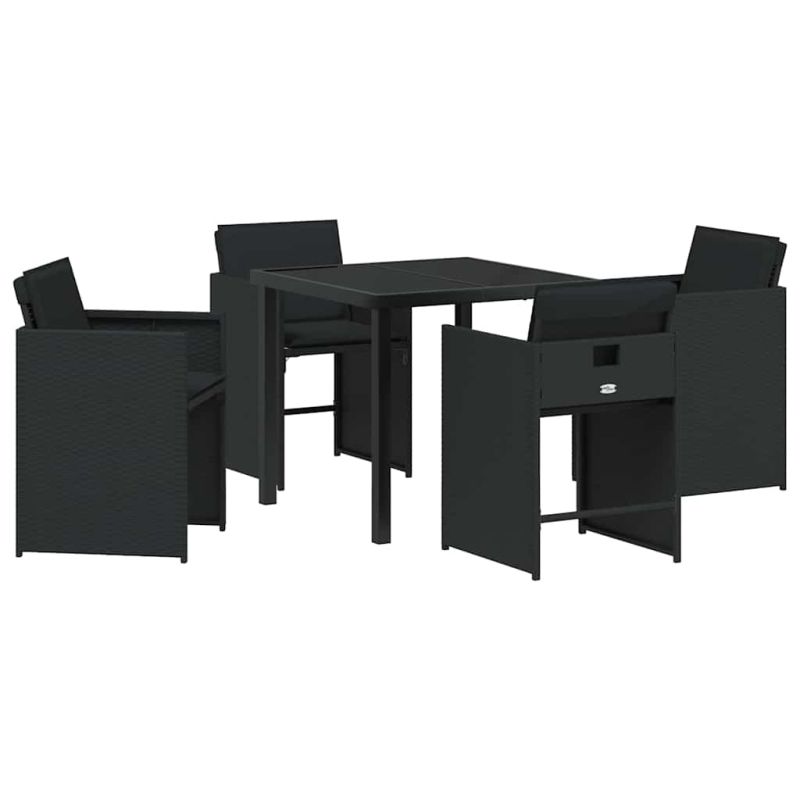 Комплект за хранене в градината 5 pcs Черно полиратан