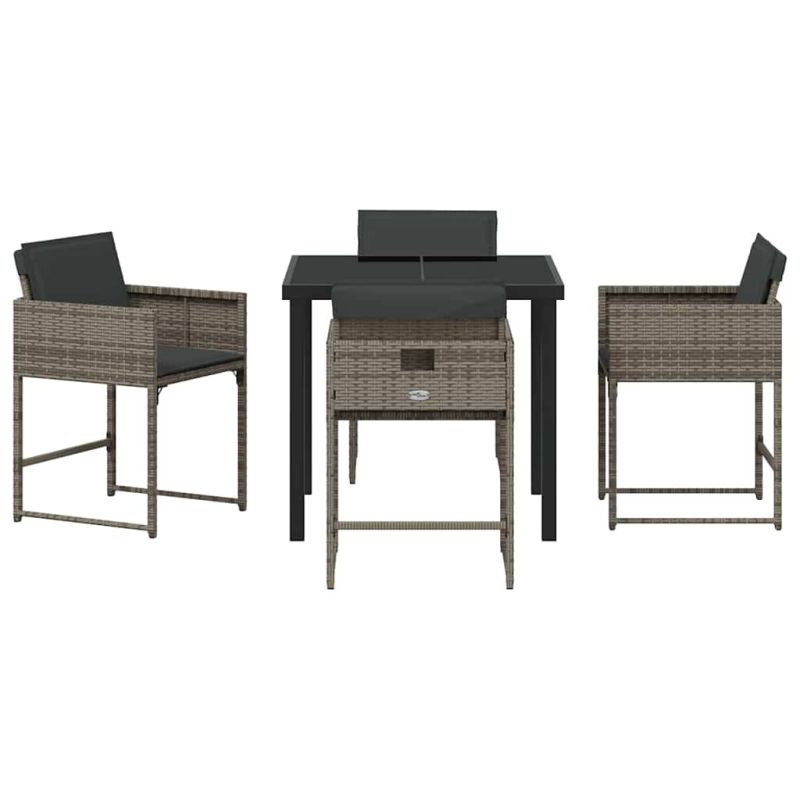 Комплект за хранене в градината 5 pcs Сив полиратан