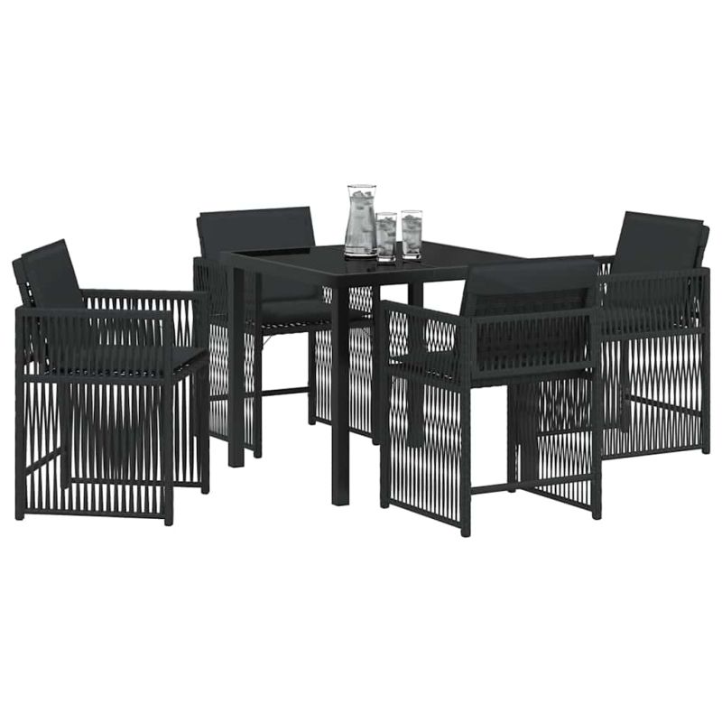 Комплект за хранене в градината 5 pcs Черно полиратан
