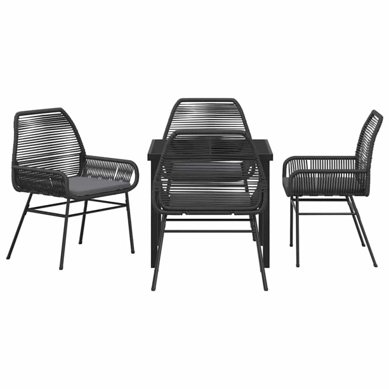 Комплект за хранене в градината 5 pcs Черно полиратан