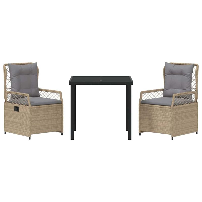 Този модерен комплект за градинско Dining съчетава стилен дизайн и практичност за вашите открити моменти. Включва маса с темперирано стъкло и места от полиратан. Идеален е за тези, които ценят красивите и удобни пространства навън, преобразявайки всяка градина или тераса в уютно местенце. Материал полиратан Полиратанът е стилен, устойчив на времето и дълготраен. Идеален за открито, осигурява комфорт и е лесен за почистване. Завършена облегалка и подлакътник с релса Облегалките и подлакътниците от полиратан не само изглеждат добре, но и предлагат комфорт по време на хранене. Издръжлива повърхност от закалено стъкло Масата има здрава повърхност, която е устойчива на надрасквания и лесна за поддържане. Стоманената рамка я прави стабилна. Регулируема облегалка Многопозиционните облегалки на столовете позволяват да настроите комфорта си, което прави лятната релаксация още по-приятна. Лесно сглобяване и грижа Сглобяването е бързо и лесно, като просто се нуждаете от отвертка и помощник. Поддържането на мебелите в перфектно състояние е лесно и с минимални усилия. Максимално 110 кг на седалка. Съобразете се с риска от открит огън и други източници на силна топлина в близост до продукта.