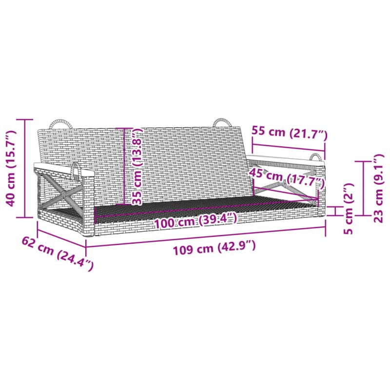 Тази пейка-люлка е перфектният избор, ако търсите релаксация и удоволствие на открито. Издръжлив материал: PE ратан, известен също като полиратан, е здрав синтетичен материал с малко необходима поддръжка, който прилича на естествен ратан. Той е лек, лесен за почистване и често се използва за външни мебели поради своята издръжливост и устойчивост на атмосферни влияния.Люлееща функция: Изпитайте върховната релаксация, докато се люлеете леко под бриза на висящата пейка с нейната функция люлеене.Практични фиксиращи пръстени: Външната мебел е оборудвана с фиксиращи пръстени, което я прави удобна за окачване на големи дървета, стойки и други здрави предмети.Здрава и стабилна рамка: Стоманената рамка с прахово покритие гарантира, че градинската мебел е здрава и стабилна за ежедневна употреба на открито. Добре е да се знае:За да сте сигурни, че вашите външни мебели ще останат красиви, ви препоръчваме да ги защитите с водоустойчиво покривало.Доставката включва само пейка за люлка. Рамката за люлка и висящите вериги не са включени. Максимално 110 кг на седалка. Съобразете се с риска от открит огън и други източници на силна топлина в близост до продукта.