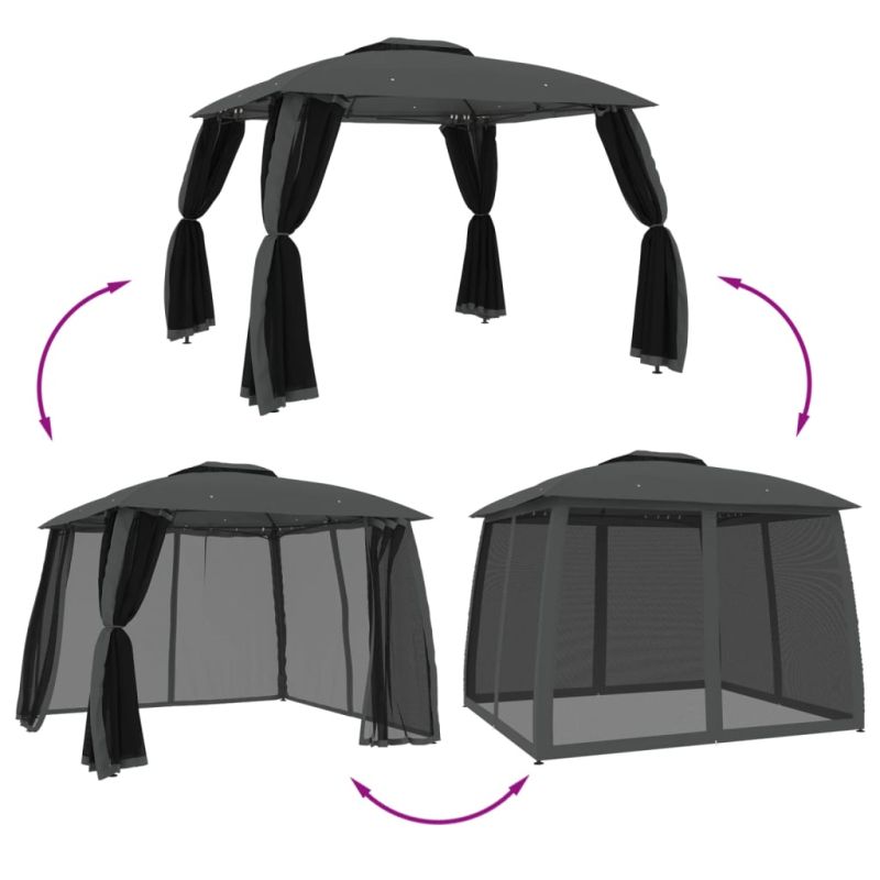 Шатра двоен покрив и стени мрежа антрацит 2,93x2,93 м стомана