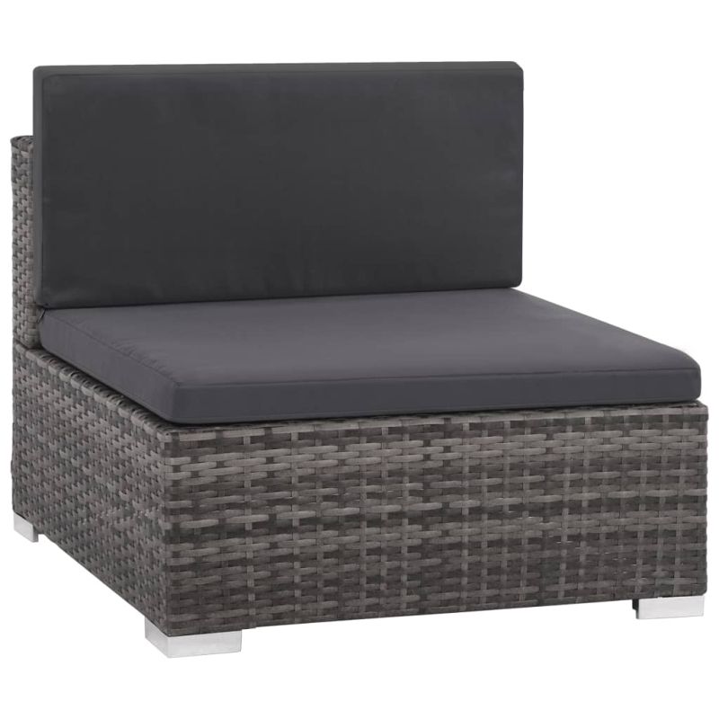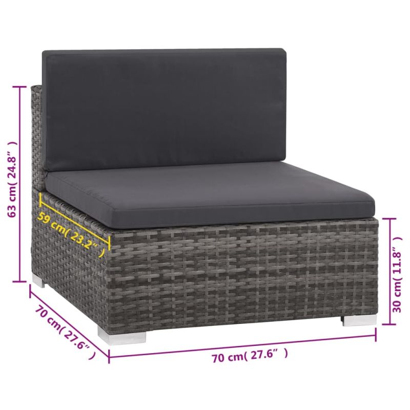 Градински комплект с възглавници, 6 части, полиратан, сив