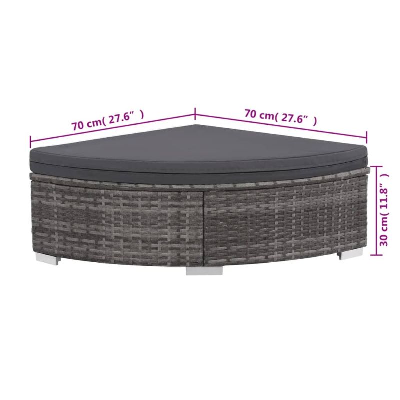 Този комплект дивани от полиратан, състоящ се от 1 ъглов диван, 2 централни дивана, 2 квадратни табуретки, 1 извита табуретка и 10 възглавници, ще ви предложи стилен кът за сядане във вашата градина или тераса. Благодарение на водоустойчивия PE ратан, комплектът дивани за тераса е лесен за почистване, издръжлив и подходящ за ежедневна употреба на открито. Прахово боядисаните стоманени рамки правят комплекта здрав и стабилен. Той е лек, а модулните секции могат лесно да се комбинират в различни конфигурации. Комплектът се доставя и с изключително удобни, дебело подплатени възглавници за максимален комфорт. Полиестерните калъфи, които изискват лесна поддръжка, също могат да се свалят и перат. Комплектът е лесен за сглобяване. Забележка: Препоръчваме покриване на комплекта по време на дъжд, сняг и слана, за да може да издържи дълготрайно.