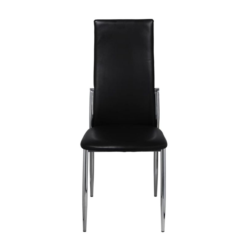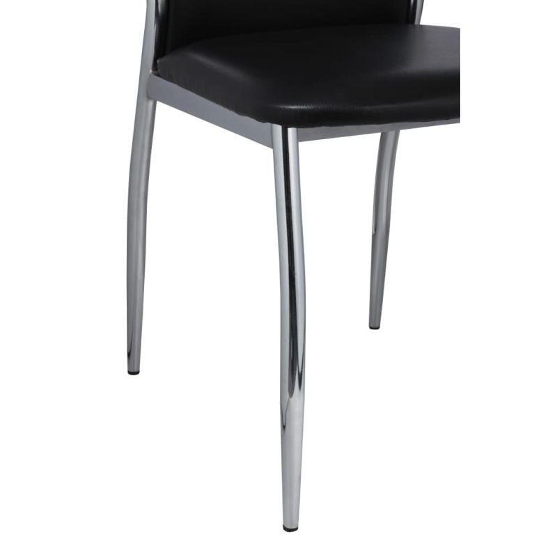 Тези 2 модерни трапезни стола имат ергономичен дизайн за повишаване на комфорта. Тези удобни трапезни столове са с висококачествена и здрава конструкция. Краката са изработени от стабилен хром, а седалката – от здрава синтетична кожа, която се почиства лесно. Максимално 110 кг на седалка. Съобразете се с риска от открит огън и други източници на силна топлина в близост до продукта.