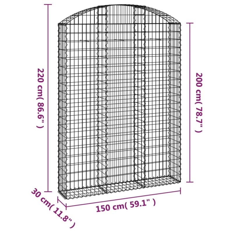 Дъговидна габионна кошница 150x30x200/220 см поцинковано желязо