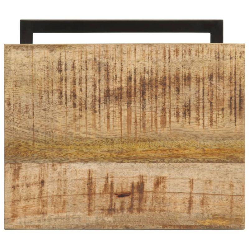 Тази странична маса от грубо мангово дърво е едновременно стилна и практична. Тази крайна маса е изработена от грубо мангово дърво – тропическа твърда дървесина със силата да понесе тежестта и да издържа на износването на времето. Освен това изящната изработка и красивите дървесни шарки правят всяка мебел малко по-различна от следващата. Прахово боядисаните железни крака допринасят за здравината ѝ. Важна забележка: Цветовете на всеки артикул варират, което прави всяка мебел уникална. Доставката е на случаен принцип.