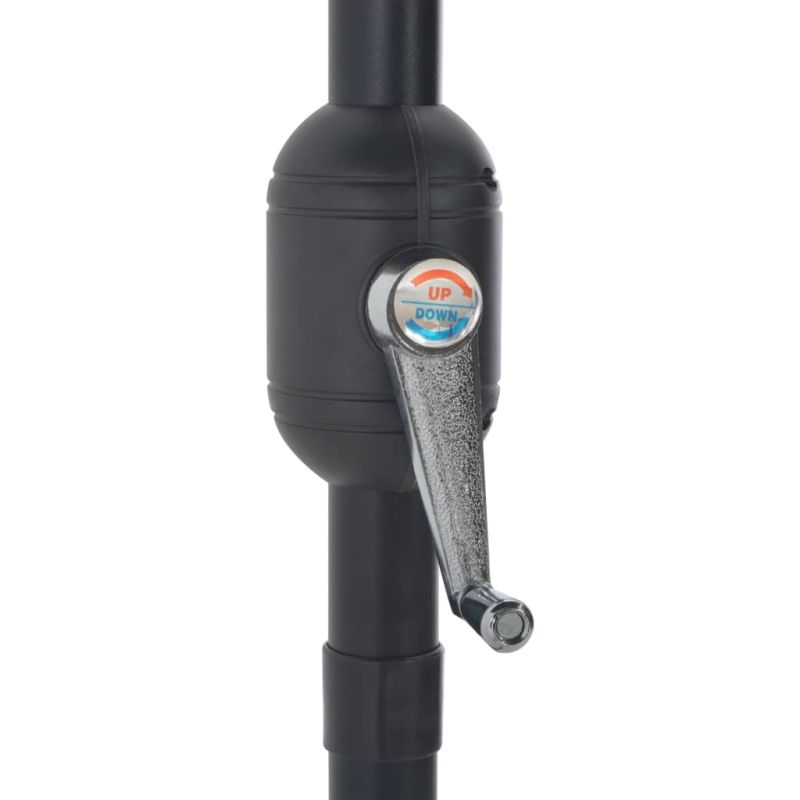 Този елегантен балконски чадър е перфектно решение за създаване на сянка, с което да се предпазвате от вредните UV лъчи на слънцето. Изработено от неизбледняващ полиестер, предпазващ от ултравиолетовите лъчи, покривалото на чадъра осигурява оптимална защита срещу слънцето и се почиства лесно. Диаметърът на пръта от 38 мм позволява монтиране върху стойката или в средата на маси с отвори. Неговият полукръгъл дизайн също допринася за уникалния чар на чадъра. Здравият алуминиев прът, заедно с 5-те здрави стоманени спици, правят чадъра много стабилен и издръжлив. Градинският чадър се отваря и затваря удобно, благодарение на манивелата. Артикулът се сглобява лесно. Моля, отбележете, че стойката за чадър не е включена в доставката. Препоръчваме обработката на покривалото на чадъра с хидроизолационен спрей, ако е подложено на силни валежи. Продуктът не е подходящ за атмосферни условия като силен вятър, снеговалеж и екстремни метеорологични условия.